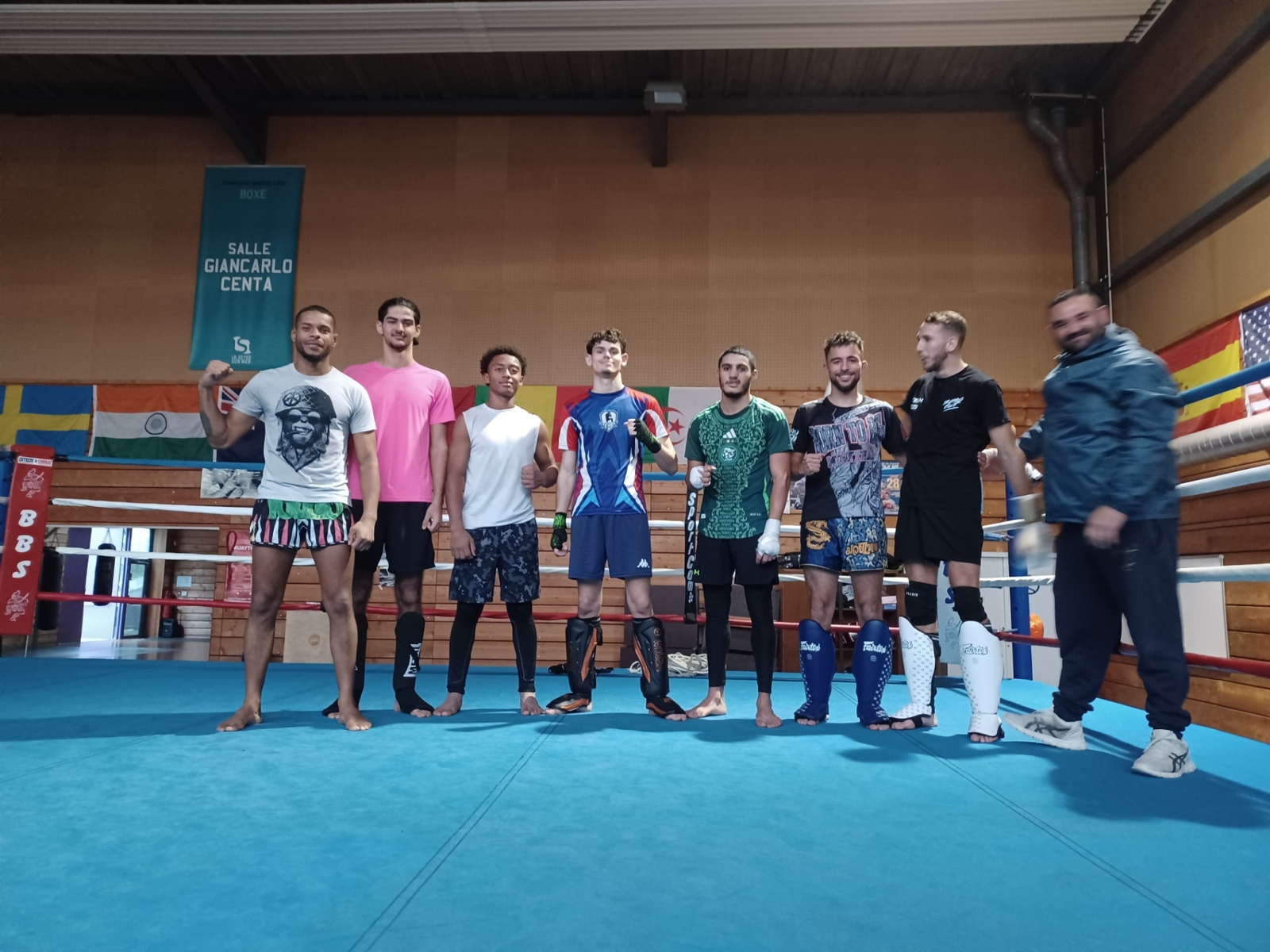Mise de gants pour nos compétiteurs Raphael DESHERIES, Gabriel ABBAZ, Tarik BOUCHALLIKH et YOUSFI Omar avec nos amis du Team Greg Tony "GT Boxing" de DRAGUIGNAN.